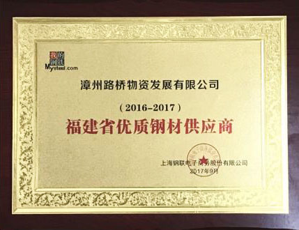路橋物資公司榮獲“2016-2017年度福建省優質鋼材供應商”稱號